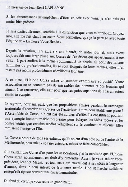 Remise de l'Unione d'Oru à Jean-René Laplayne